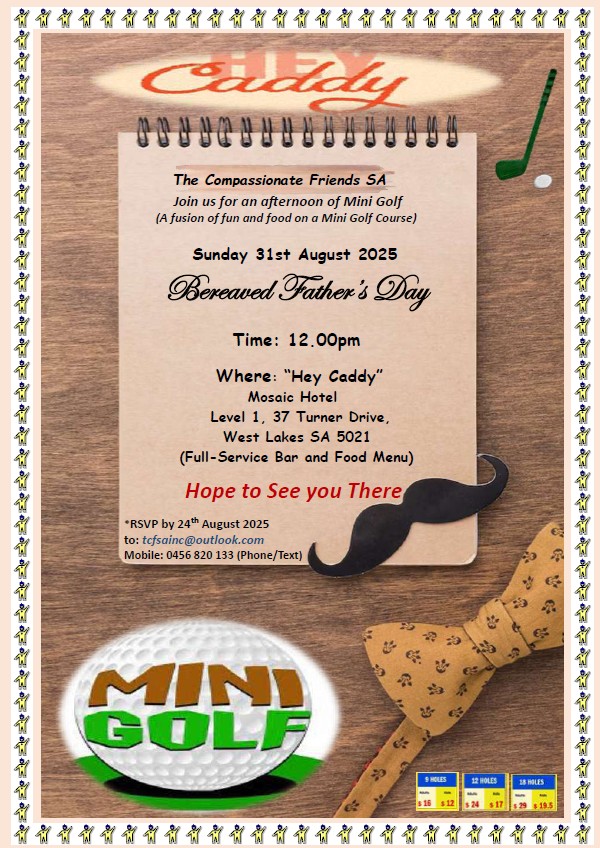 The Compassionate Friends SA Committee plan and host a number of events throughout the year in order to provide opportunities for our members to come together. Some of these opportunities are for support, others for friendship and others for honouring our children. We hope that there is something for everyone.